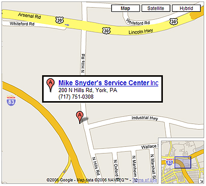 Interstate 83 on North Hills Road. We are only 30 minutes south of